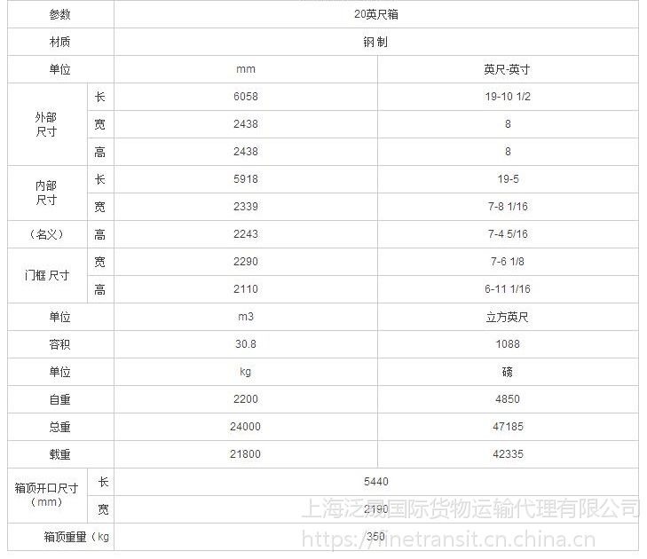 硬顶集装箱参数表: