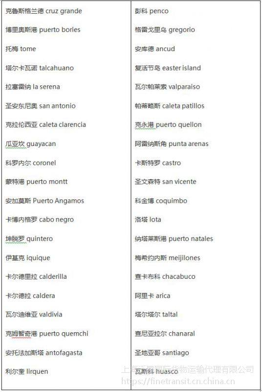 智利海运港口一览表
